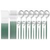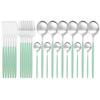 Matte Summer Mint Green Gold Spring Picnic Cutlery Set Stainless Steel Dinnerware Set 24Pcs Knife Fork Spoon Tableware Set Kitchen Dinner