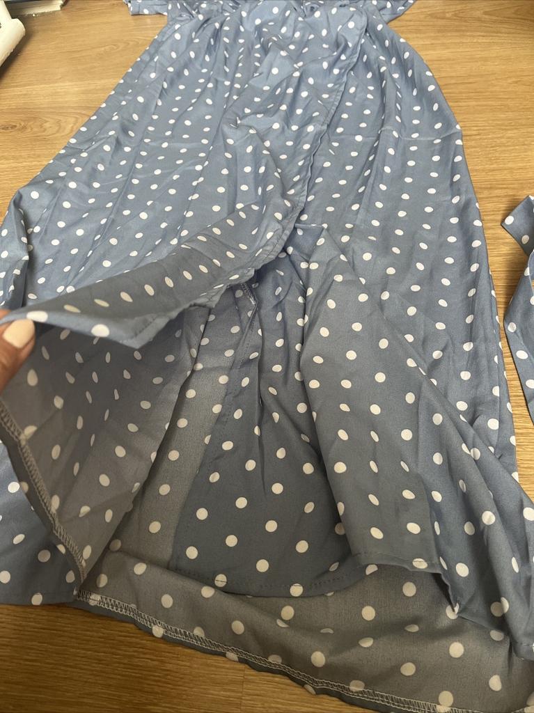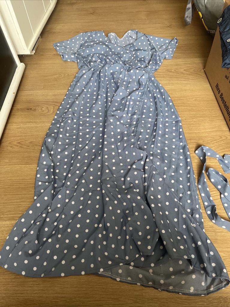 I would love to show you this amazing dress on, but I can't get it over my boobs. I am totally in love with the dress. The color is great and so is the cut. Unfortunately it doesn't fit over my breasts even though the 3XL is my size. I have 90E. The dress was delivered within 2 weeks.