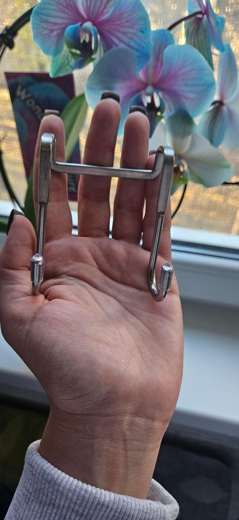 Excellent hooks with silicone tips. Strong metal. The distance between the hooks is 6 cm. The length of the part that is attached to the furniture is 6.5 cm.