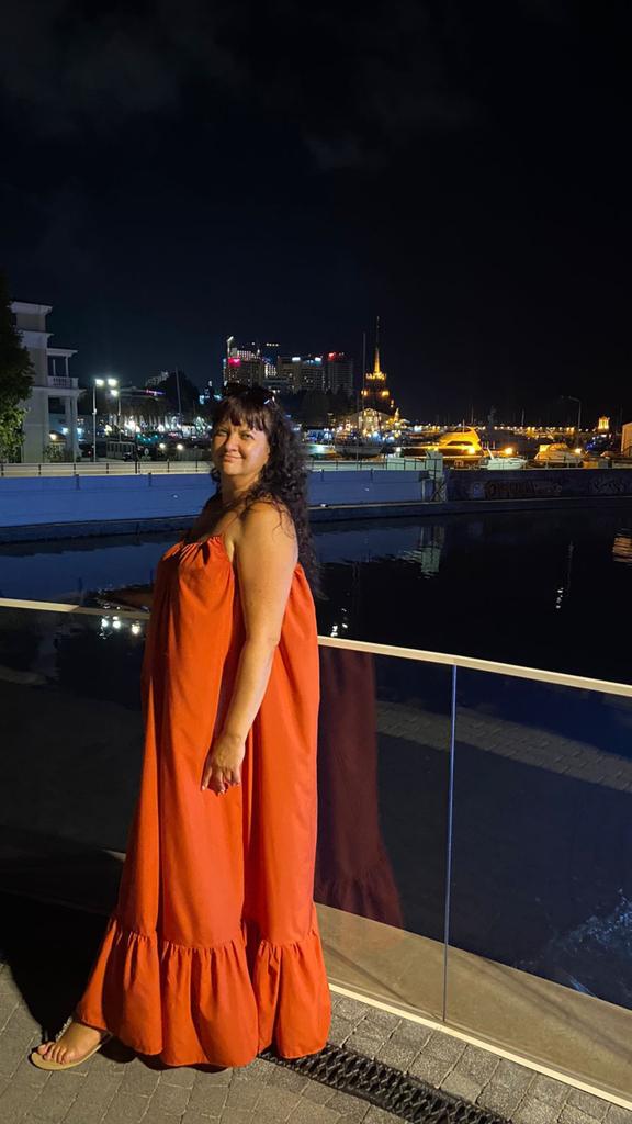 XXXL . I'm 186/6.1' tall. The dress fits perfectly . It's so light and free. It's so big! I love it!