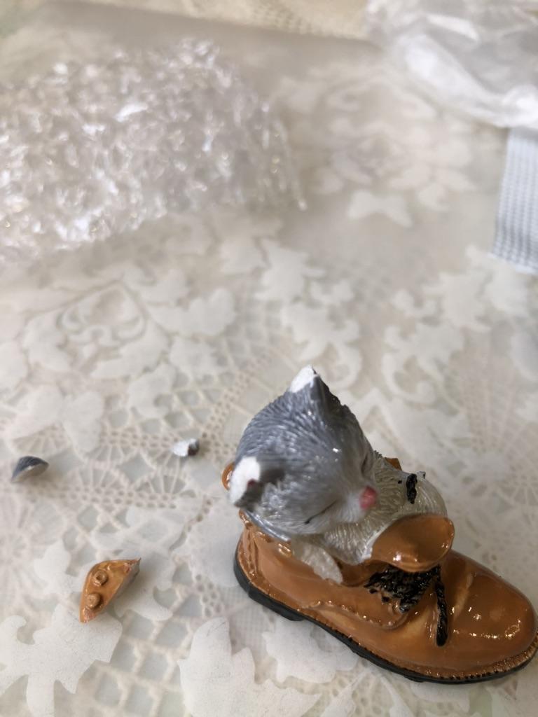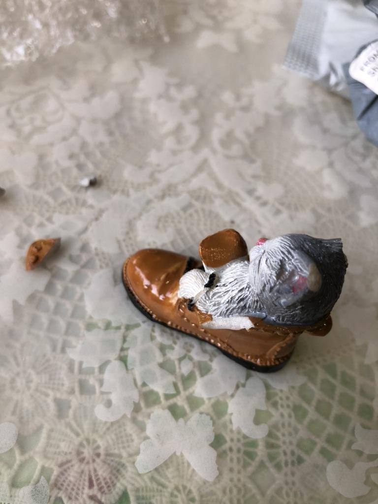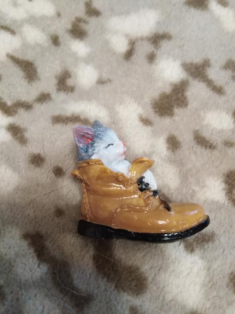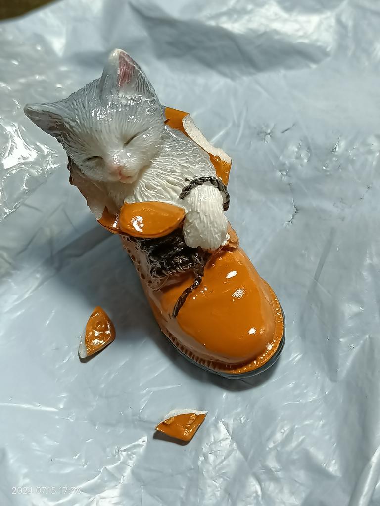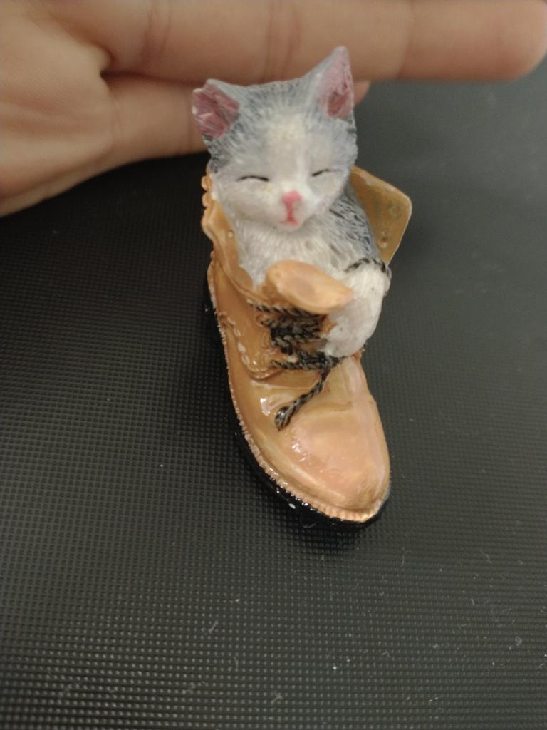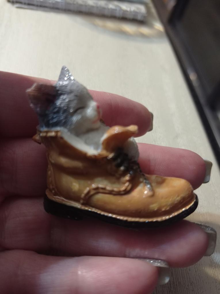 The cat is very cute. But the edge of the boot is chipped off.