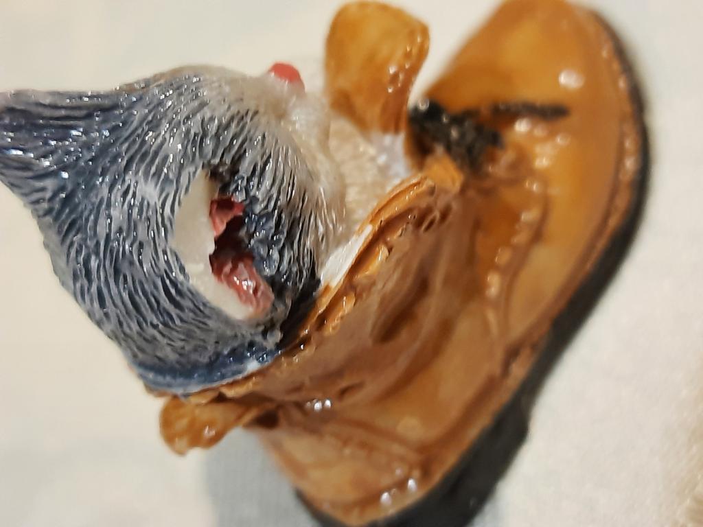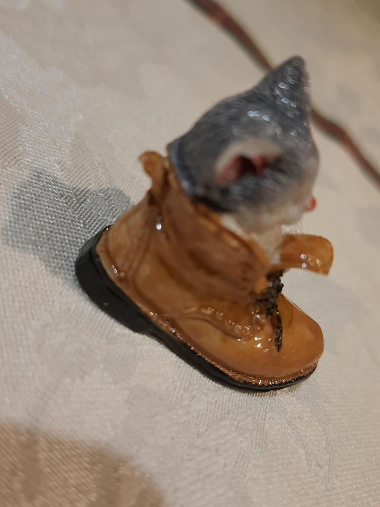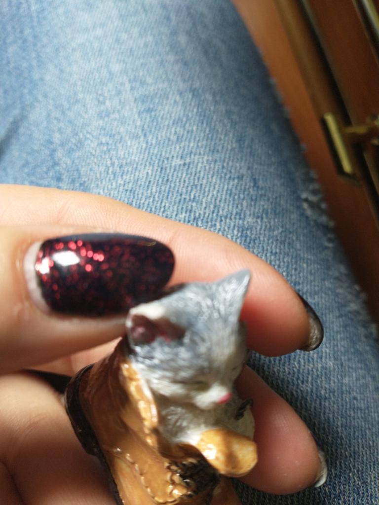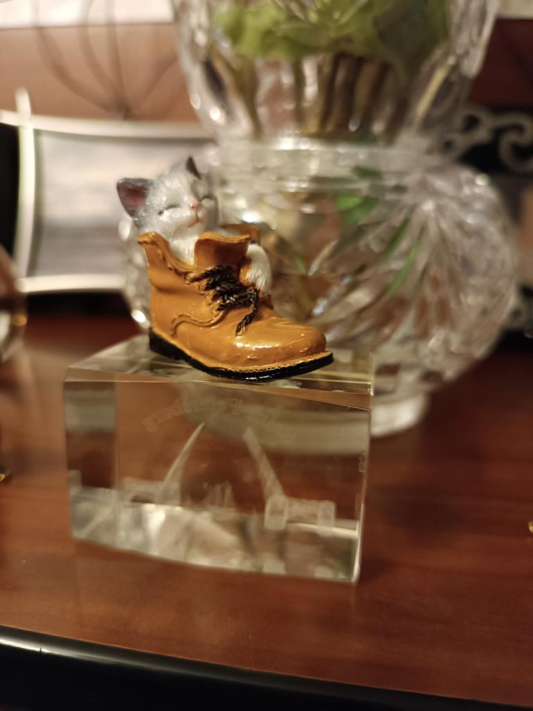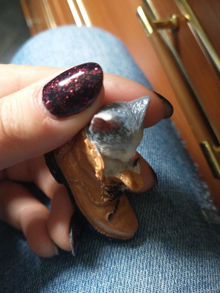 The cat is very cute. But the edge of the boot is chipped off.