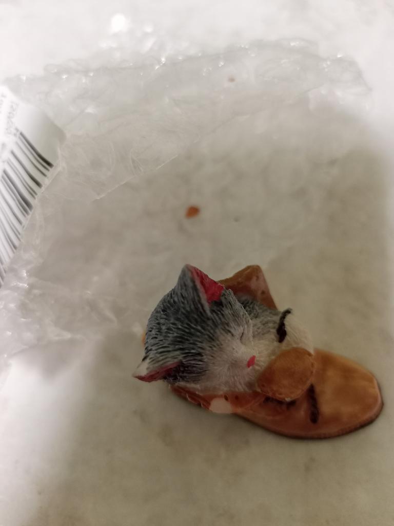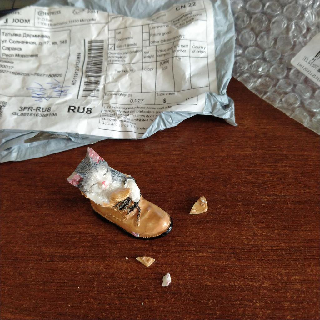 The cat is very cute! But it arrived with two chips, an eyelet and the edge of a shoe... such figures need to be packed better.