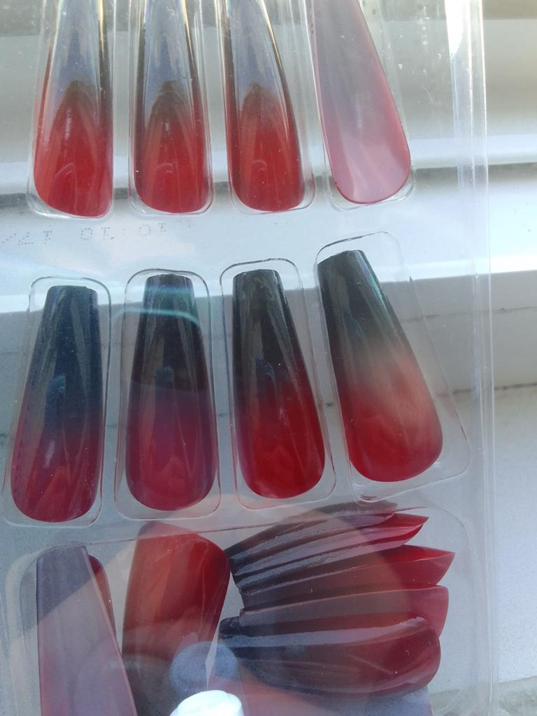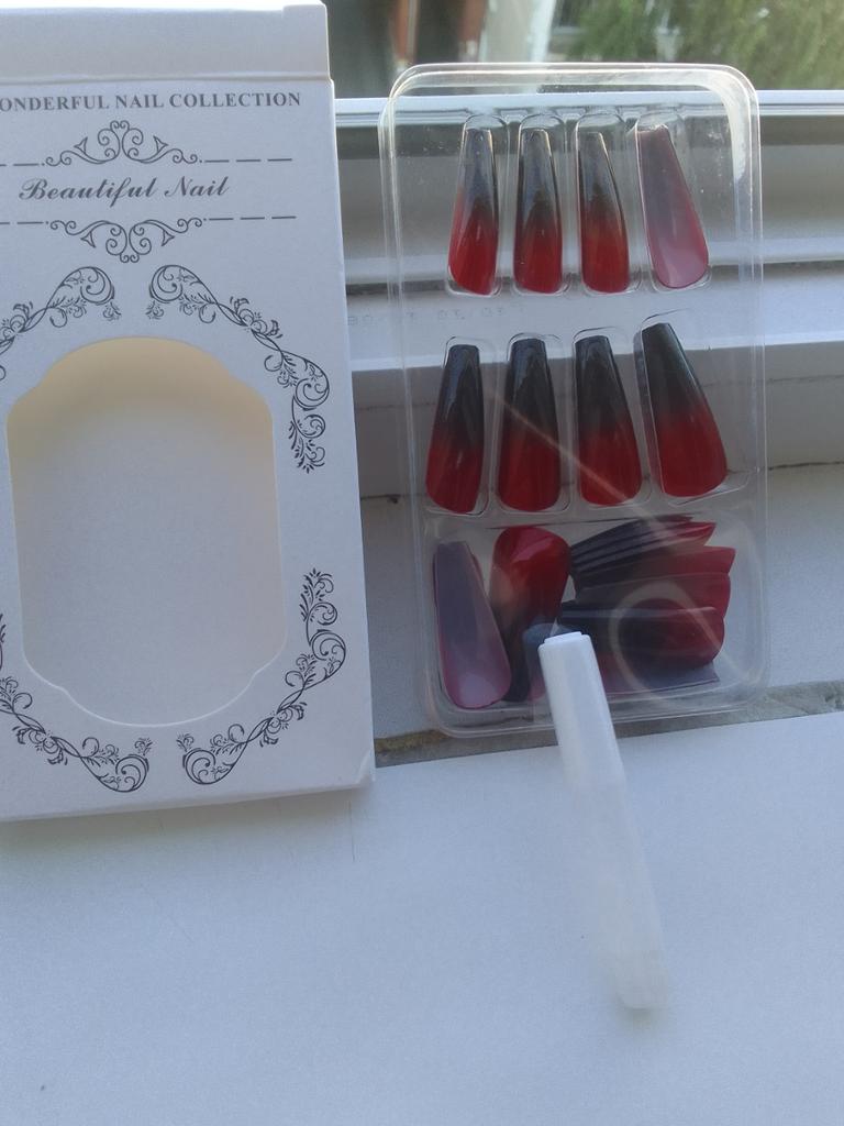 24pcs Red and Black Gradient Long Ballet Wear Nails Finished Fake Nails Manicure Patch Nail Patch Waterproof and Removable