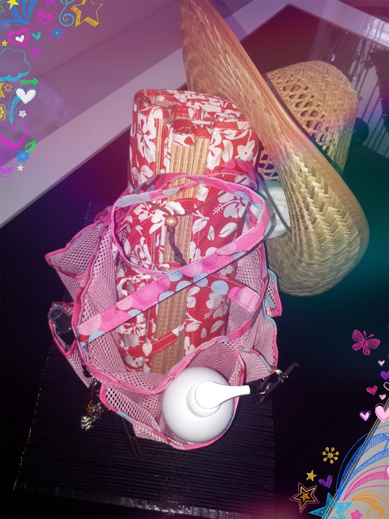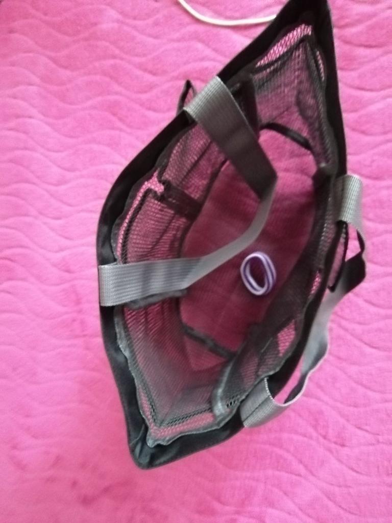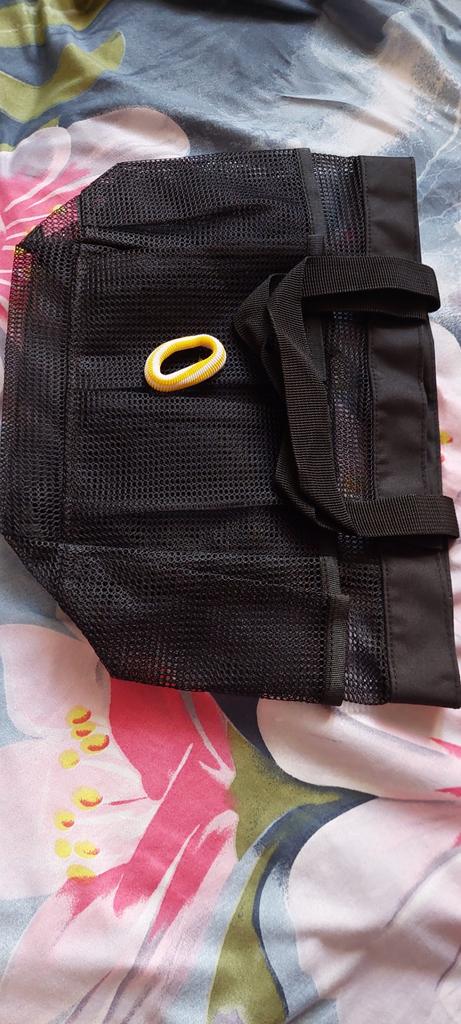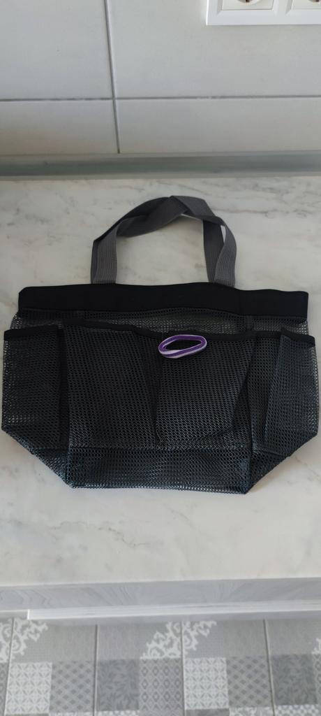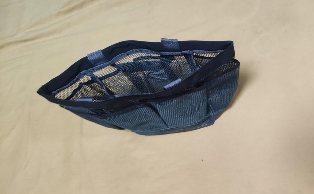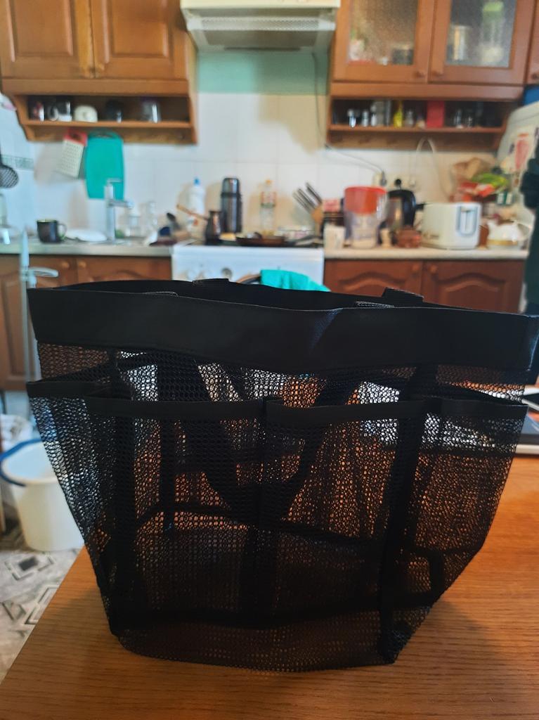 ⭐⭐⭐⭐⭐ The bathing bag arrived after 14 days, well packed. 👍 The bag is made of robust plastic mesh and is relatively stable. The seams are very nicely finished and the threads sewn neatly. It offers space for a very large, thick bath towel and a small hand towel. Different things fit outside. Even a 500ml water bottle fits in without any problems. I am absolutely thrilled and would be happy to recommend this item and the seller. 🌺 Note: The bag is delivered empty.