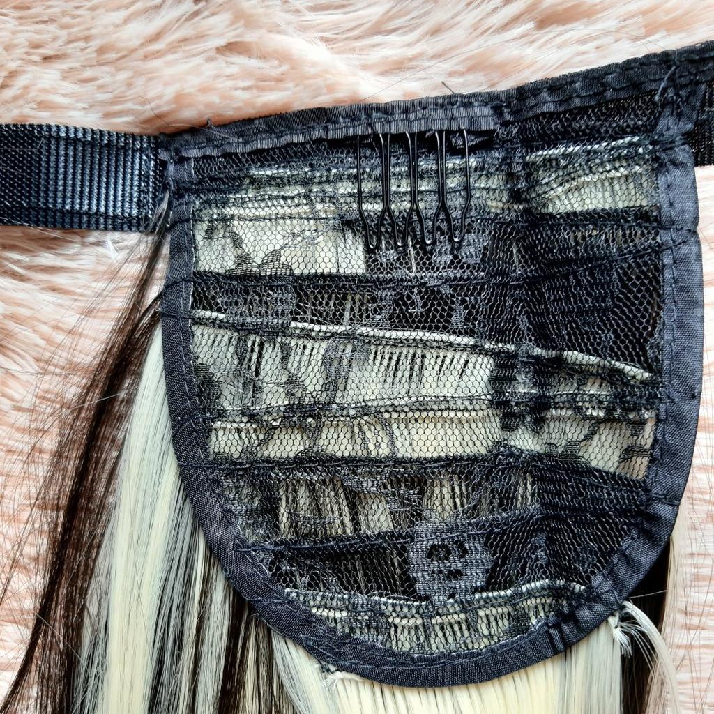 Nice ponytail. even with my short hair i can creat a long ponytail. easy to use. in different collours to order. i choose for blond. received in 2 weeks
