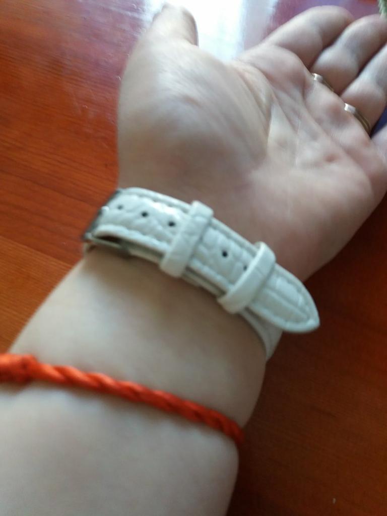 The watch is beautiful, but the strap is not leather, threads constantly climb from it.