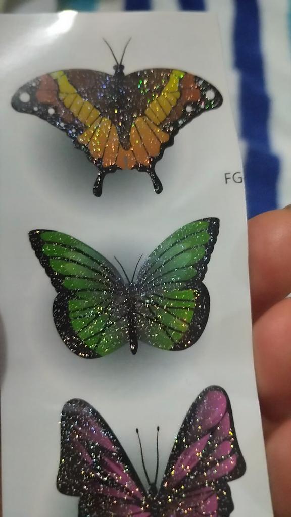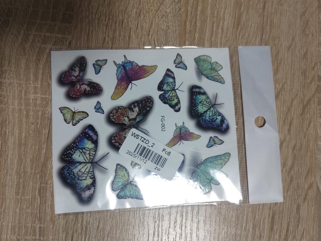 Butterflies are simply lovely. It’s not visible in the photo stated, but when I received it I saw that the butterflies with sparkles are small and can be glued to your hand. In summer, on a sunny day, they will look brilliant.