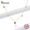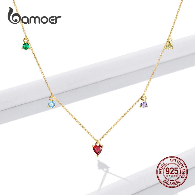 BAMOER 925 Sterling Silver Elegant Gold-plated Five Colored Zircon Necklace for Women Elegant Fine Jewelry