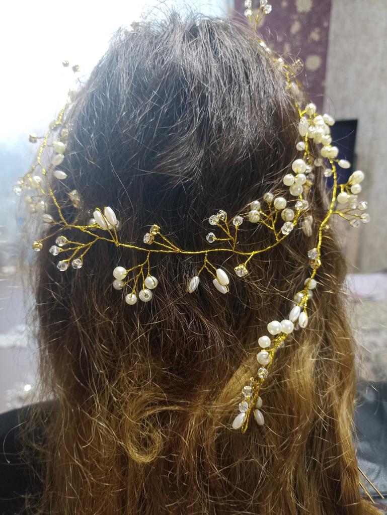 1PC Hair Chain Rhinestone Hadband Hair Chain Headpiece Faux Pearl Tiara Fashion Long Hadband