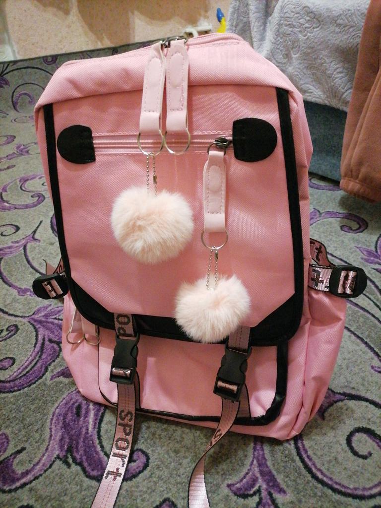 the backpack is great and roomy, there are several pockets, my daughter is satisfied, thank you to the seller, I recommend it
