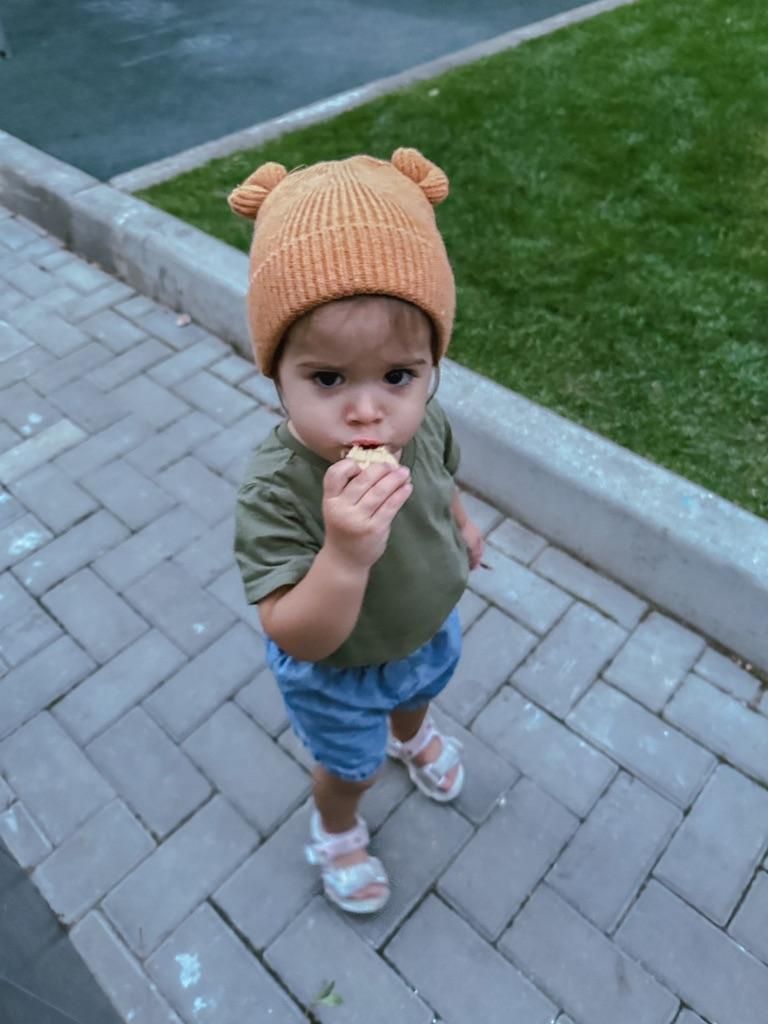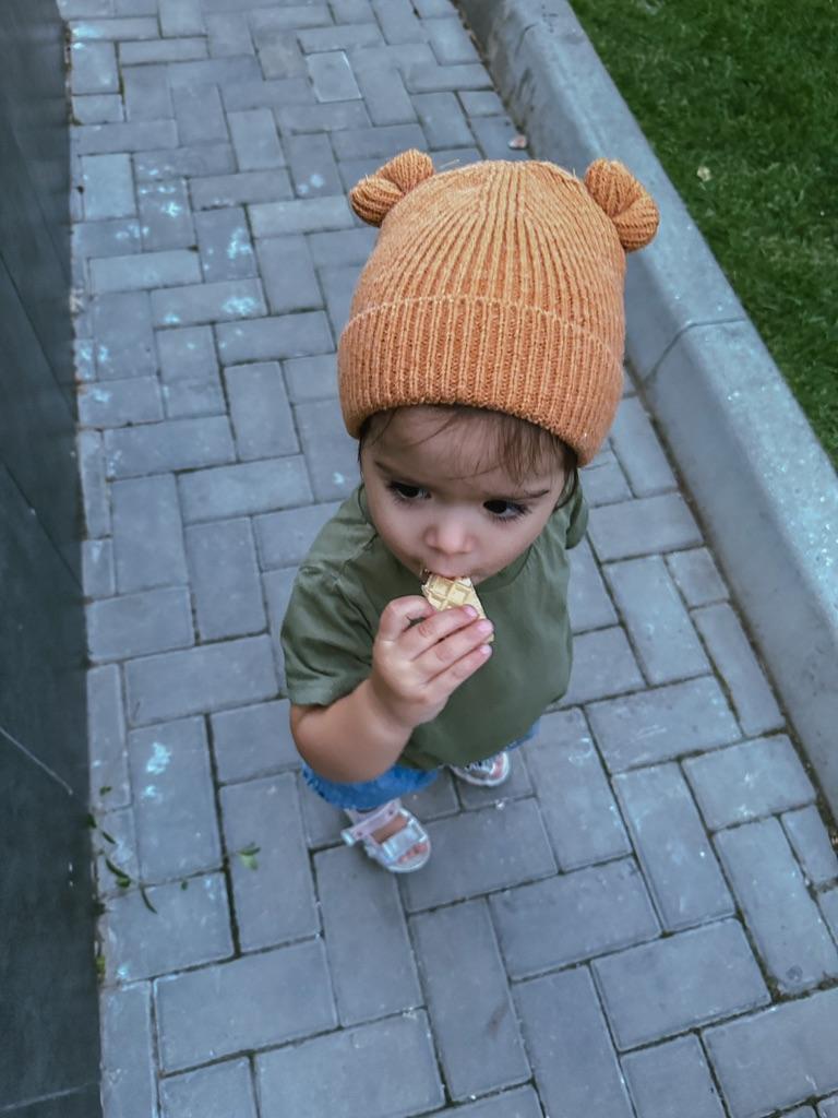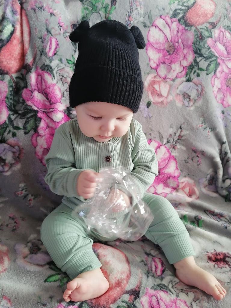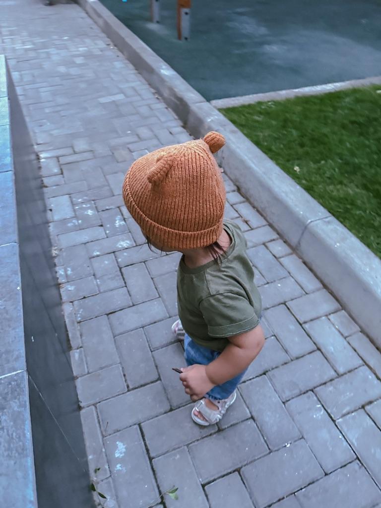 The hats are cute. π It also fits a younger child. I think it will also be good for a two-year-old toddler. The daughter is tiny, tiny, with a head circumference of 44 cm, and yet she looks nice. π This is another color for the collection. π