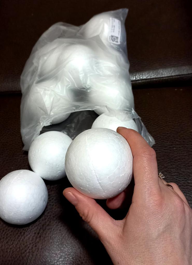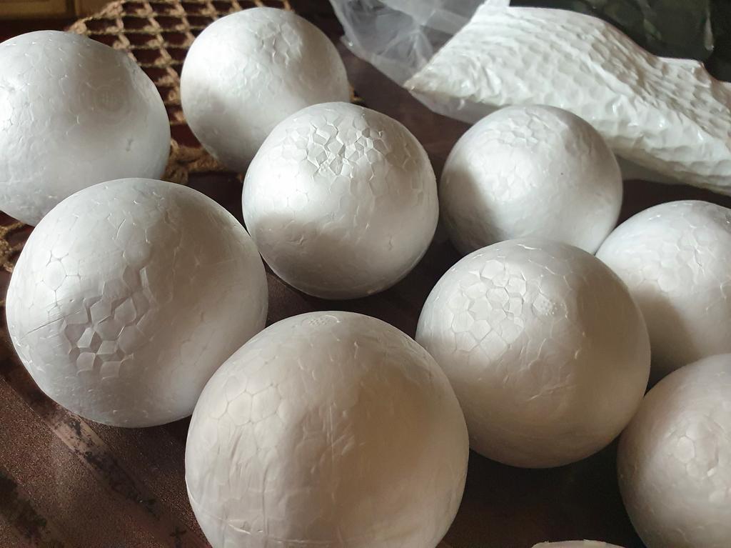 Five orders came together. I recommend coniferous cast cast. Tape tape is also good. The sacking tape looks cool metallic, I really liked the stick. Polyfoam balls disappointed me. Six out of ten are damaged. Packed badly, the seller should pay attention to the packaging of the product. The quality corresponds to its price, but I need whole unpeeled balls.
