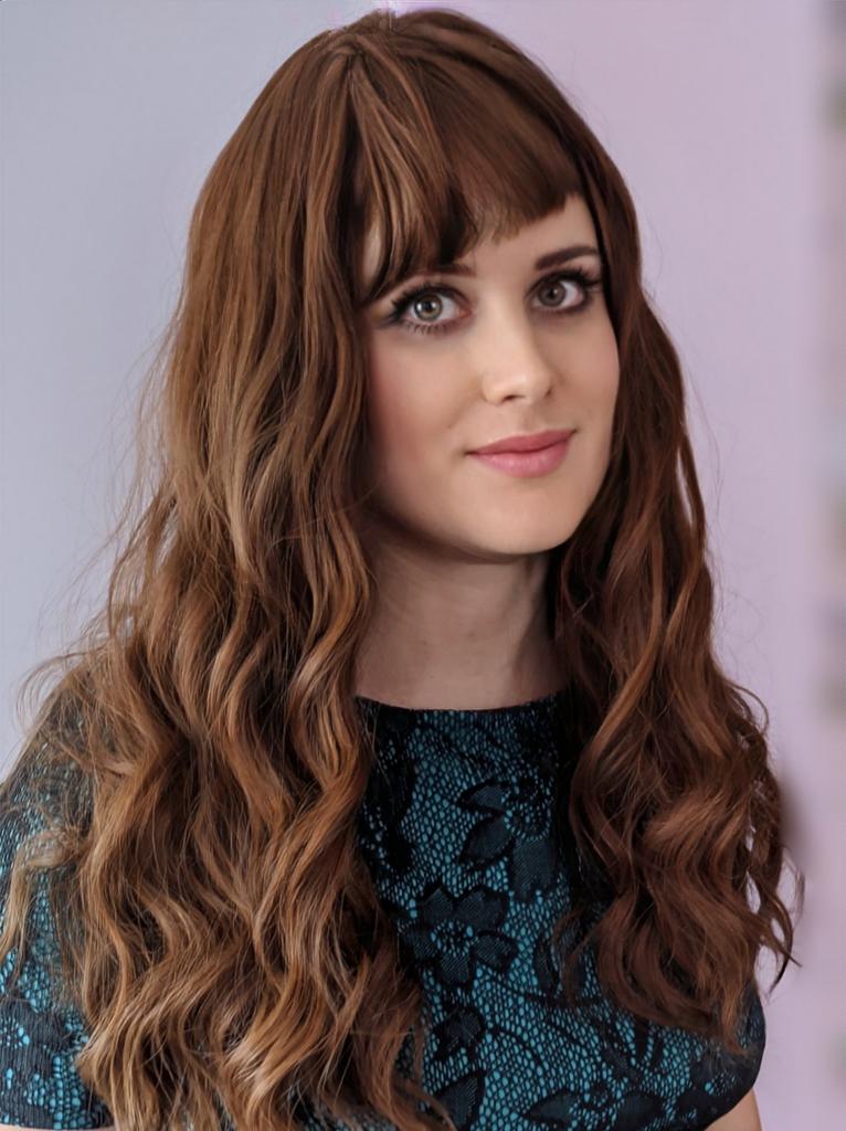 MERISIHAIR Women Long Water Wave Wigs with Blunt Bangs Synthetic High Temperature Fiber Wigs Daily Party Cosplay Use