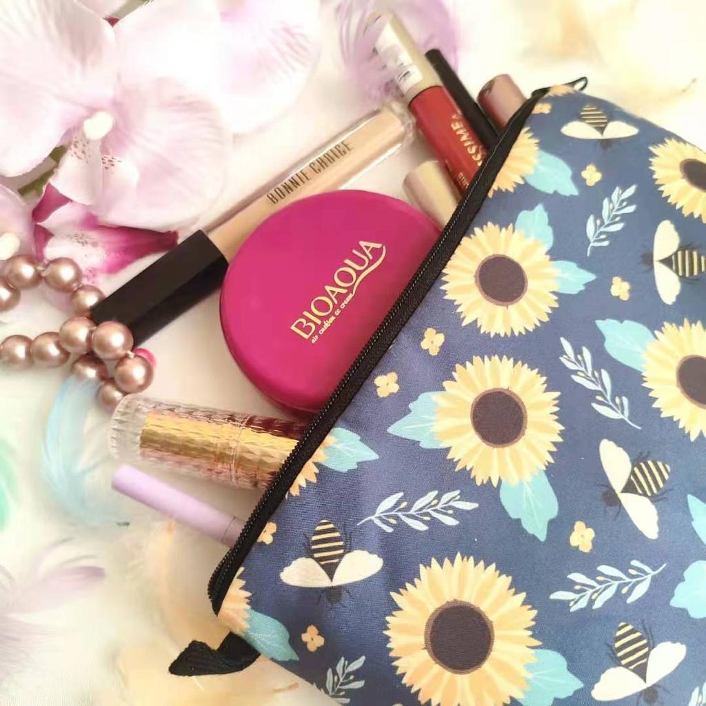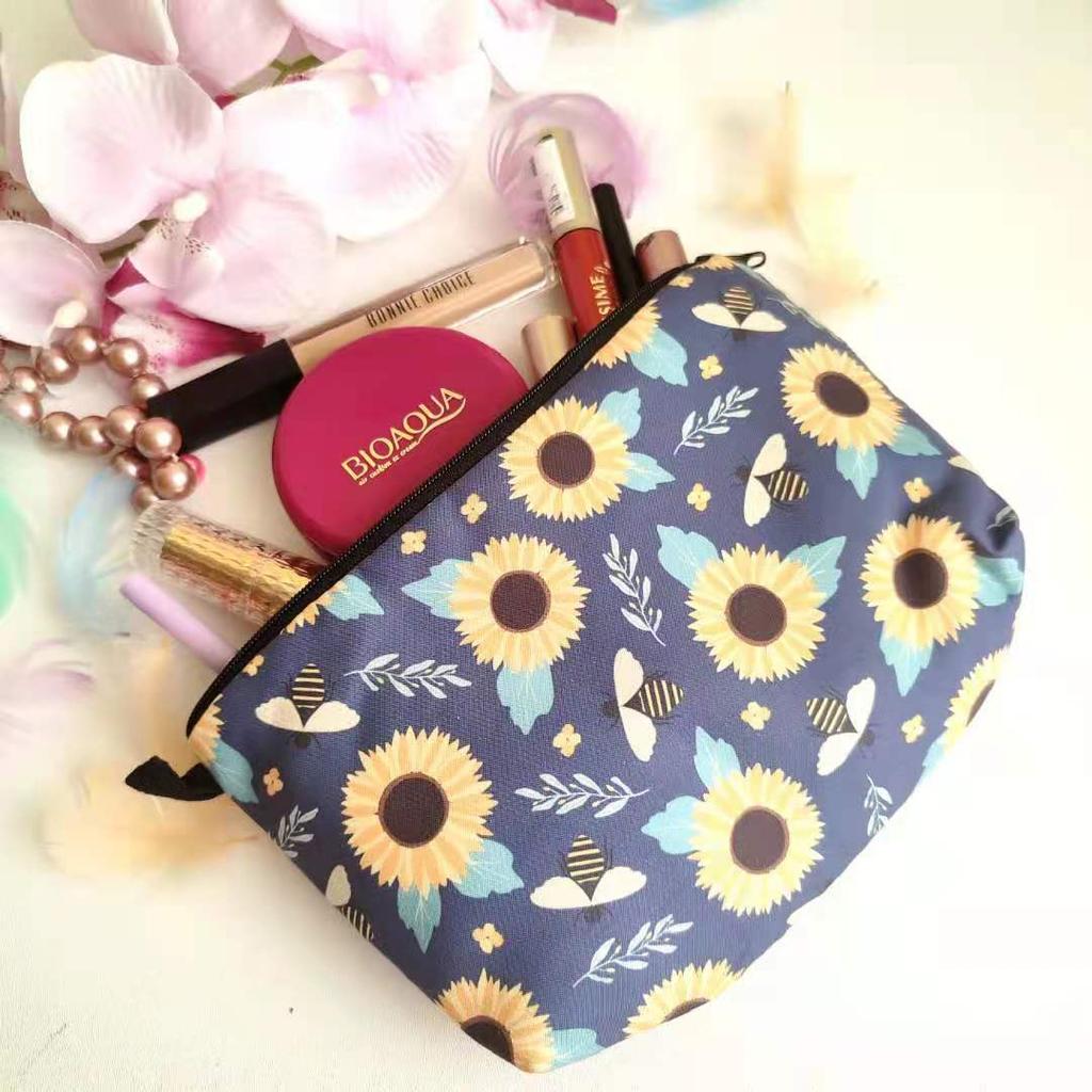 Women Flower Print Cosmetic Bag Toiletries Organize Travel Storage Case