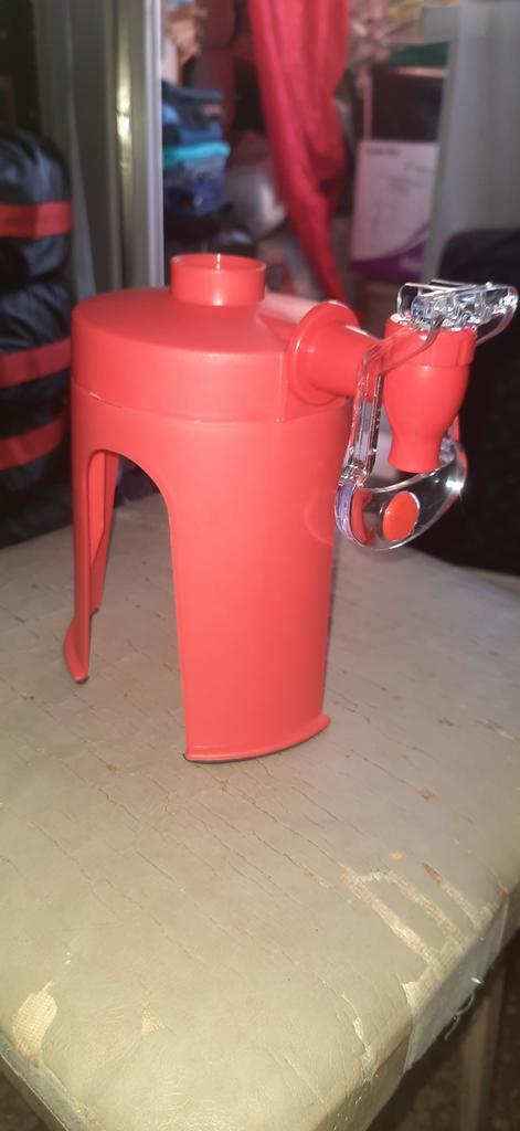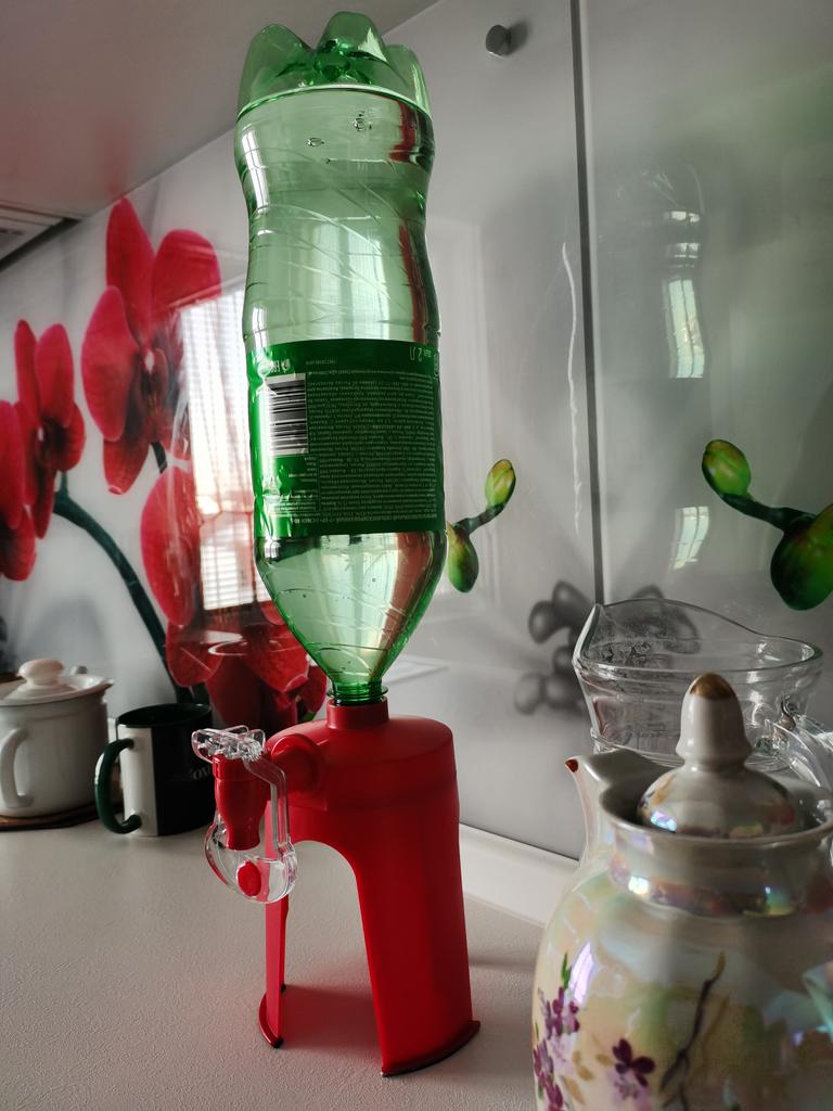 dispenser for carbonated water and liquids (compot, juice, water, etc.) I have not yet tried the complete set, 2 spacers and a special needle for piercing the bottle (bottom), if it is a regular drink without gas