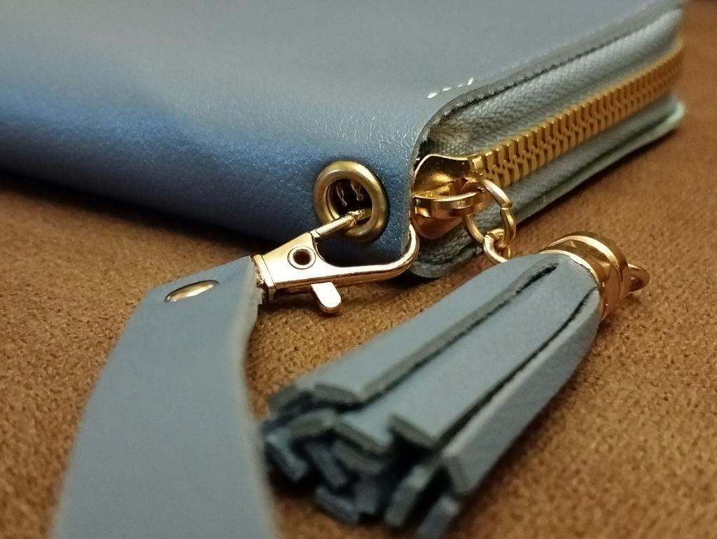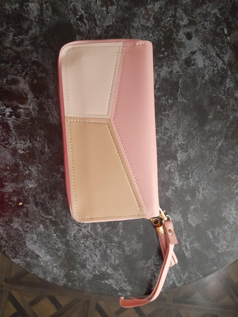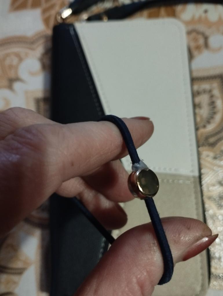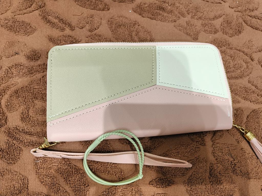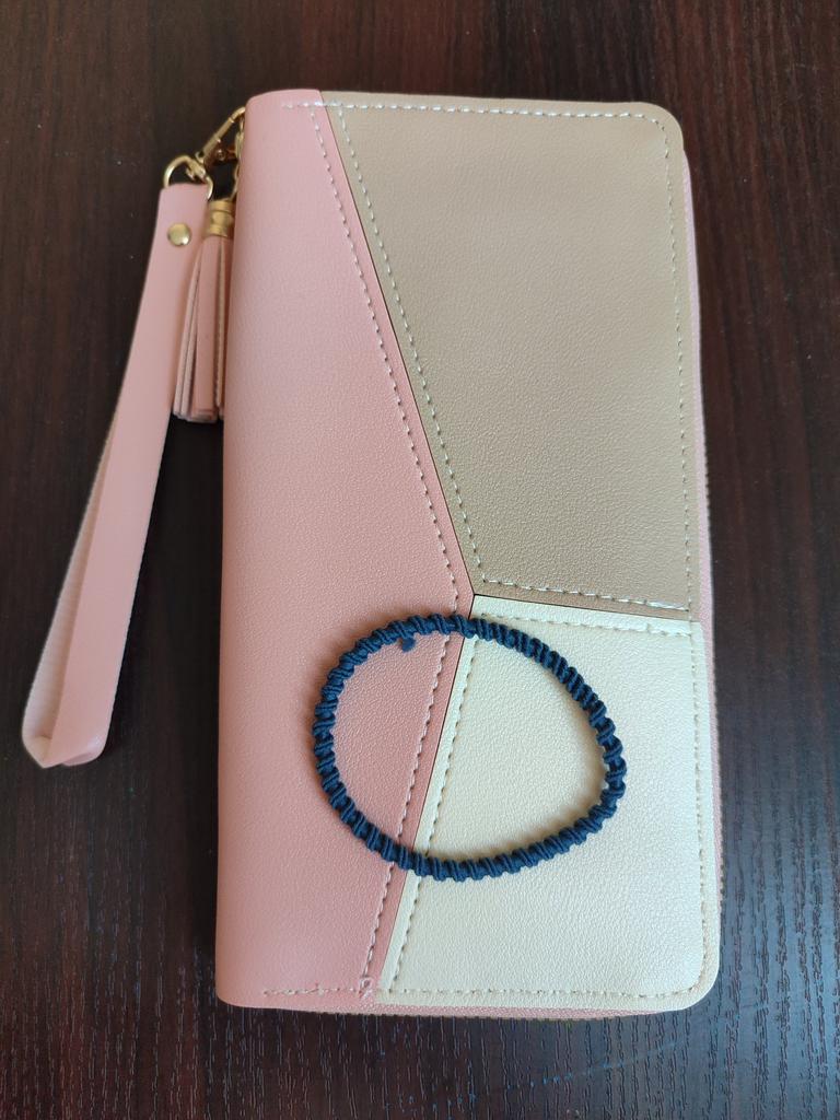 The wallet is very beautiful. It fits comfortably in the hand and thank you, they included a hair tie as a gift.
