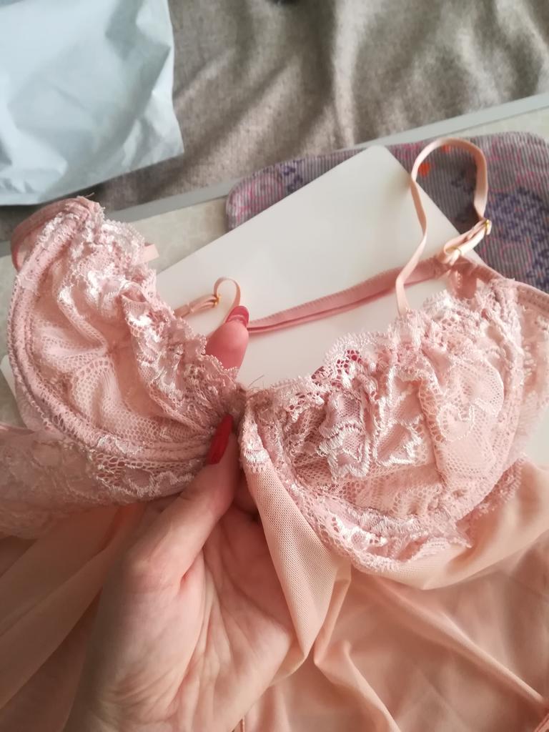 Ordered on 02/18/20022 (the combination of the package is given, it was ordered earlier) Received 03/23/2022 Underwear nice to the touch. Universal size. Despite the fact that the sizes are given, the size will definitely come to Eu 42. Because I have one. The only problem is the bowls are very small. It looks tragic for a larger bust. With a different solution at the bust, there would be no problem because the material adapts to the body. In the photo, I compared my hand to the cup for the scale. Please take into account that I have small and tiny hands. So this cup is really small. Unless it is better to fit in with a smaller person, regardless of the size of the breasts. I entered the panties without any problems. So larger sizes fit mine as much as possible Thank you joom and seller 😘 If you have been helped by my opinion ❤️ I will be grateful 😉 Edit. Please note when buying on the bust. It is very small. I try on very small and filigree girls. And the cup still doesn't fit. Because the rest is ok. However, a big problem with the size of the cup