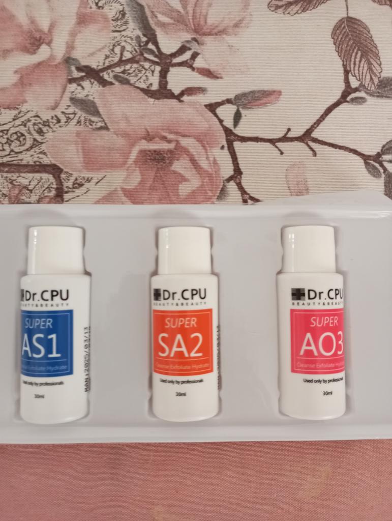 3-piece skin care set 👍👍❗️ Delivery time: 🚚🚛✈️✈️✈️15 days in Italy. Delivery: A 3-piece skin care set is included in the delivery The set includes: Super AS1: The main ingredients of Super AS1 are lactic acid, which promotes collagen regeneration. It gently removes impurities AS1 stimulates the formation of new skin cells through gentle peeling and repairs the old skin structure. Super SA2: The main ingredient of Super SA2 is salicylic acid. Thanks to the intensive action of salicylic acid on oily skin, it prevents acne. It also contains natural moisturizing ingredients to soothe the skin. Super A03: The main ingredients of Super AO3 are a glycerin solution, soy extract, green tea extract and cypress leaf extract. These penetrate deep into the skin, effectively promoting regeneration. Dr. CPU Super AO3 solution prevents dehydration. Dr. CPU Hydrafacial Serum 30 ml concentrated solutions are suitable for dermabrasion devices and Hydra Facial. For all skin types. 🔝 Summary✅️: skin care set . 🙏🌞 Thank you joom and the seller 😘😘🙏 5 stars 🌟 🌟 🌟 🌟 🌟 🌟