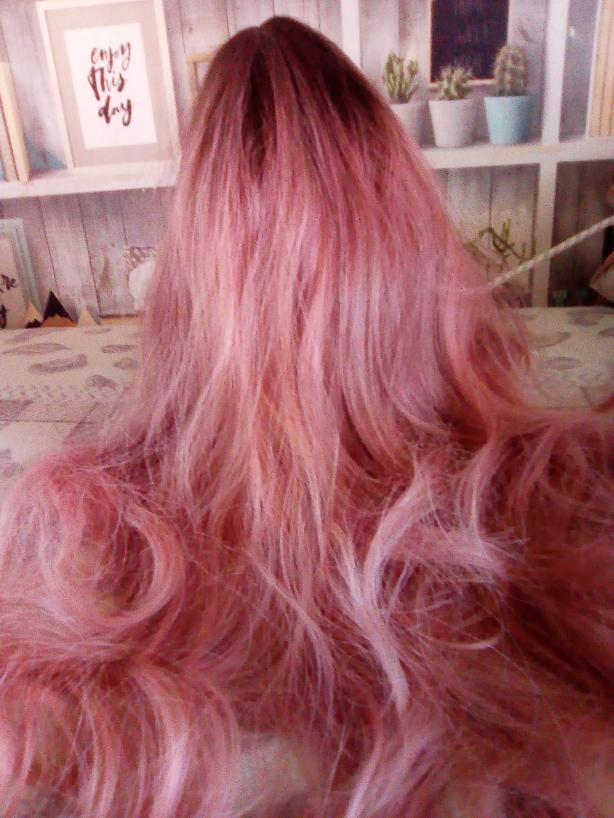 Long Pink Black Root Wavy Synthetic Cosplay Daily Party Hair HairTypeWigs for Women