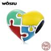 WOSTU 925 Sterling Silver Charm Love Jigsaw Colorful Bead Pendant Fit Original Bracelet Necklace For Women Jewelry