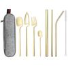 Gold Portable Dinnerware Set Unique Design Travel Reusable Camping Silverware Cutlery Tableware Set With 215/12/6 Straight Straw
