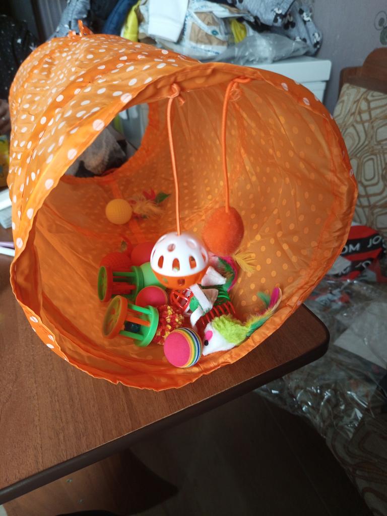 A good pipe with toys for a cat, plays, runs according to the mood with toys. But this is for very small cats. I recommend