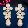 CMM Luxurious Cubic Zirconia 3 Tone Gold Color Leaf Flower Drop Earrings