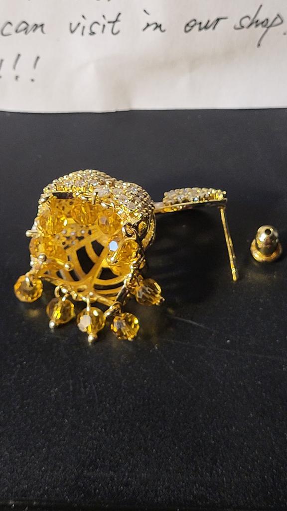 CMM Luxury Gold Color Cubic Zirconia Tassel Bell Drop Earrings