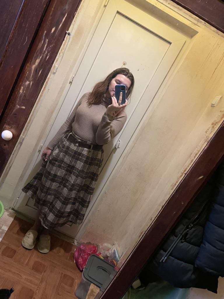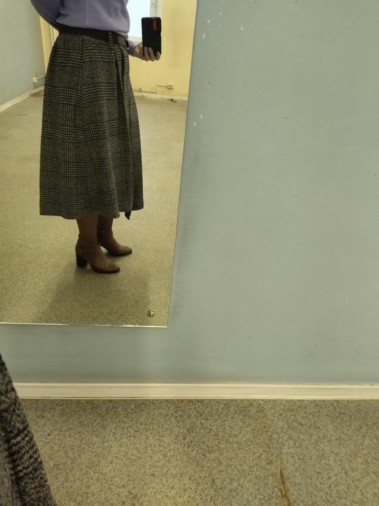 The skirt is wonderful, warm just in time for autumn weather, only the belt was replaced with a wide one