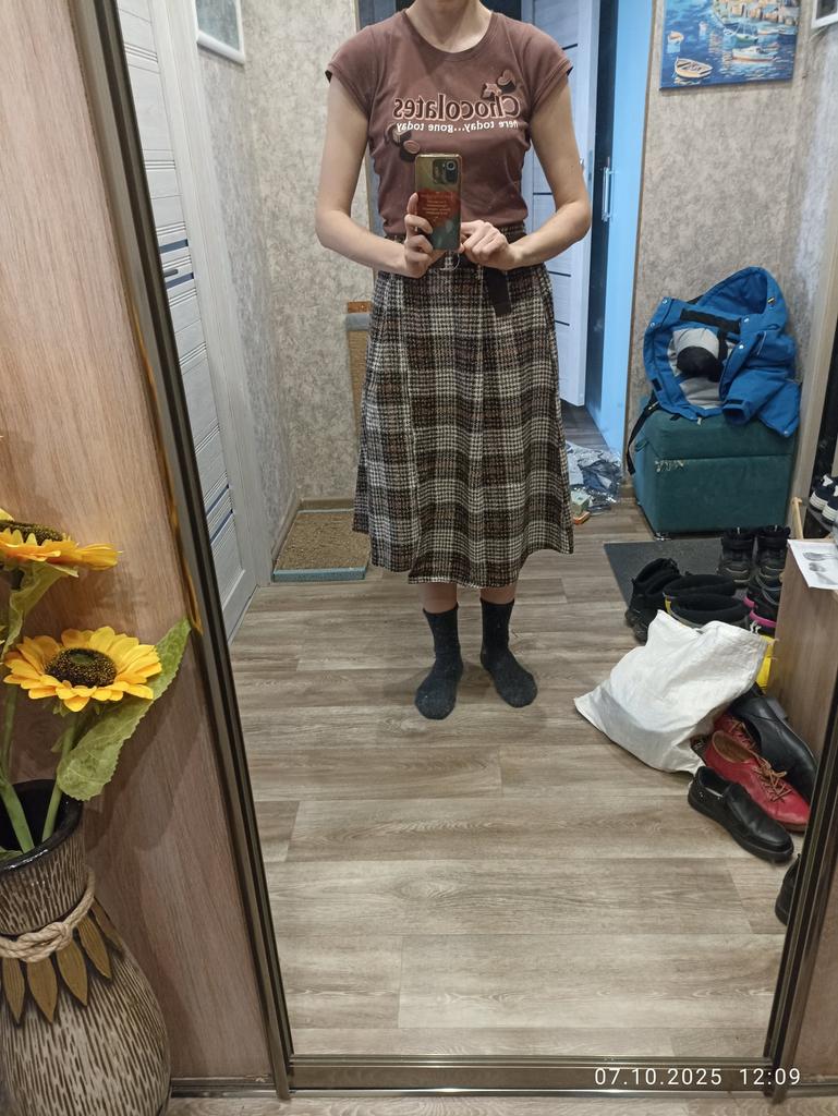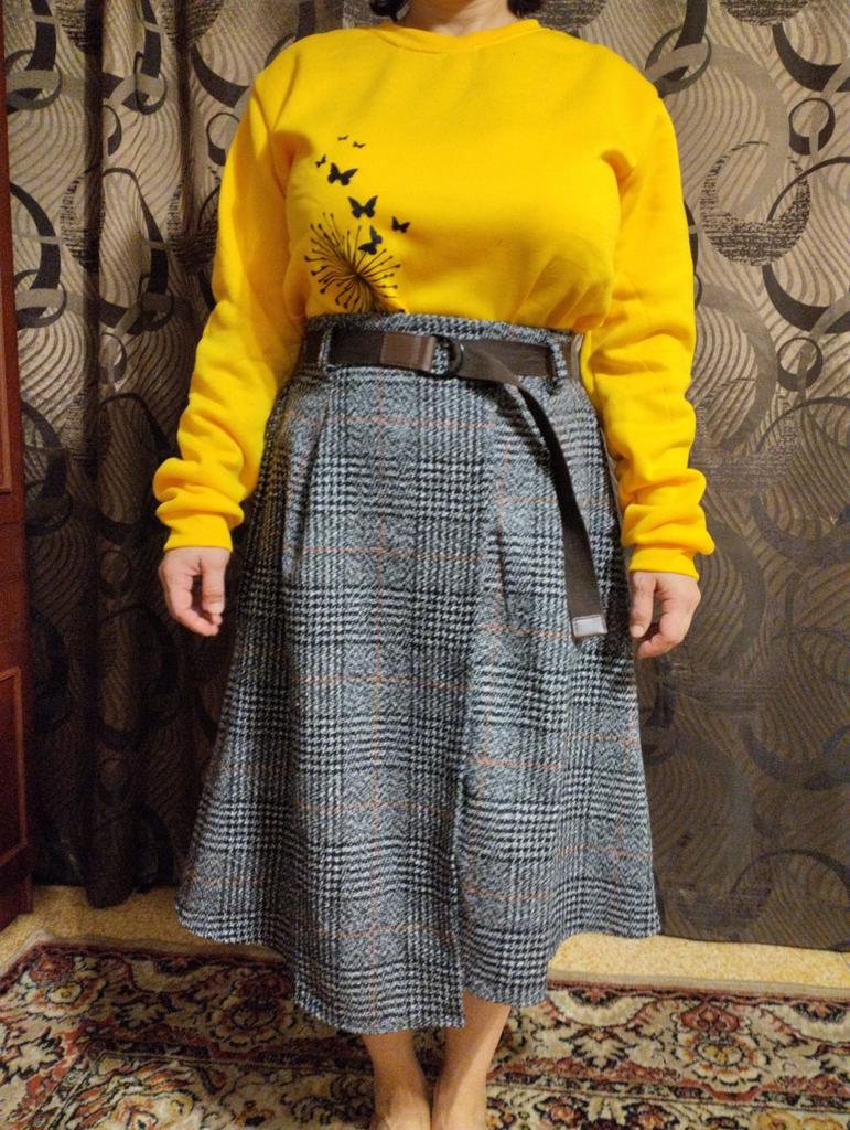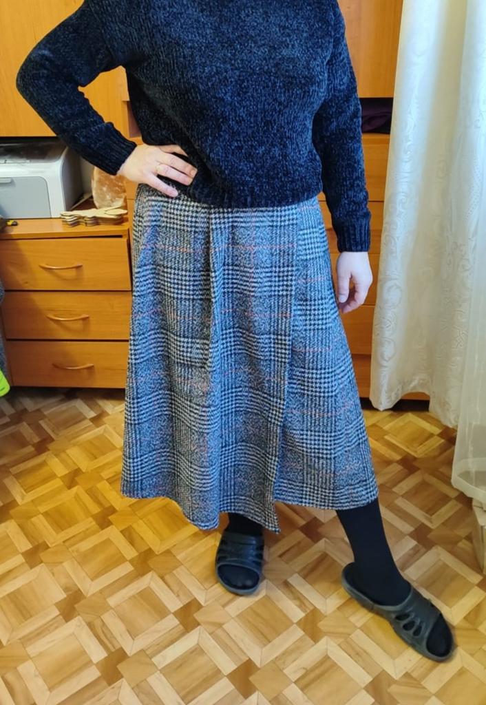 The skirt is wonderful, warm. The only thing is that I did not choose the right size, but everything can be solved with the help of an elastic band and a belt.