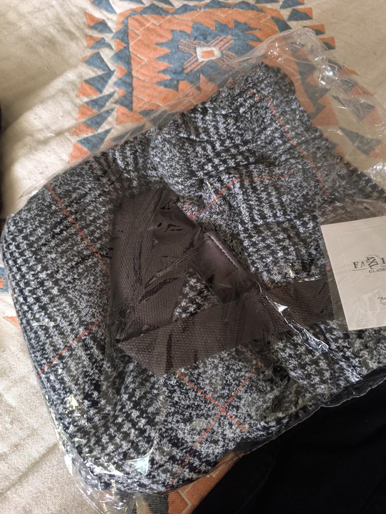 Needs to be ironed well. Elastic band at the back. Good fabric, warm.