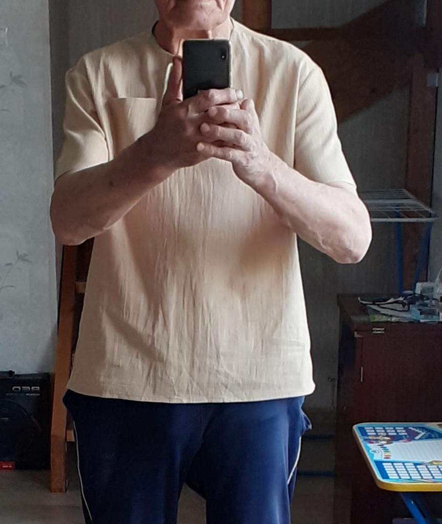 Nice shirt. The material is thin, soft, cotton. There is a chest pocket, which is very convenient: you can always put a parking ticket, receipt, or card. I chose the size according to the table. Everything fit.