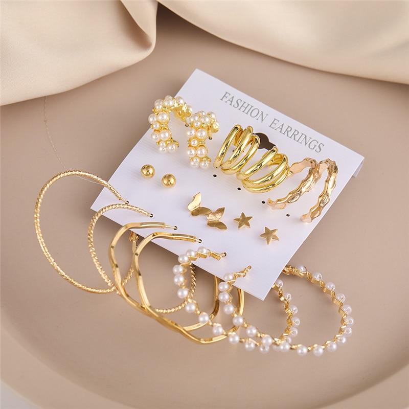 Fashion Pearl Hoop Earrings Set For Women Trendy Gold Butterfly Big Hoop Earrings Brincos Jewelry Gift