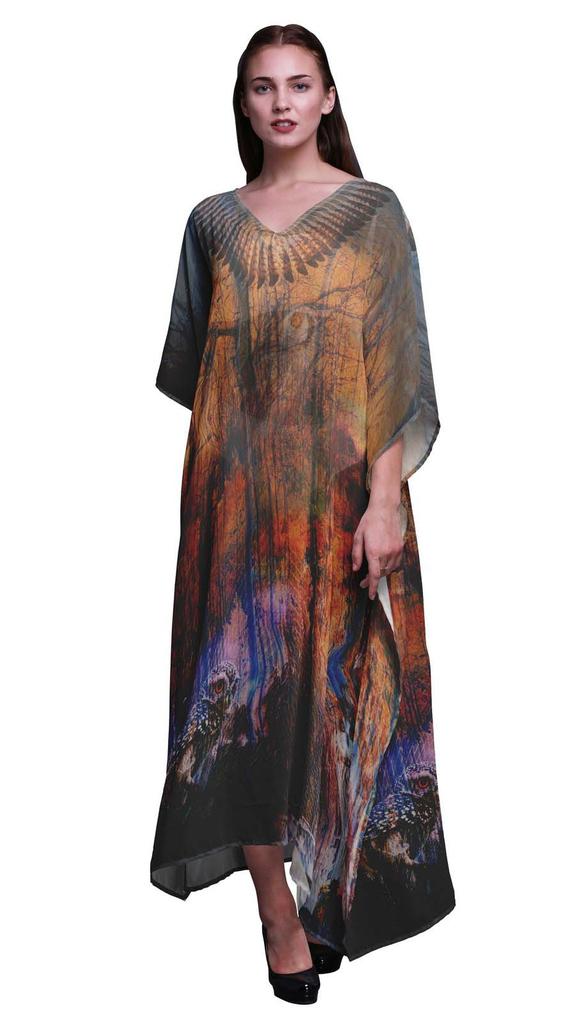 Phagun Owl Jungle Long Caftan Maxi Dress Beach Swimwear Cover Up Womens