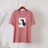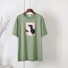 Hirsionsan Vintage Art T Shirt Women Summer Casual 100% Cotton Short Sleeve Tees Female Loose Cartoon Pattern Print White Tops