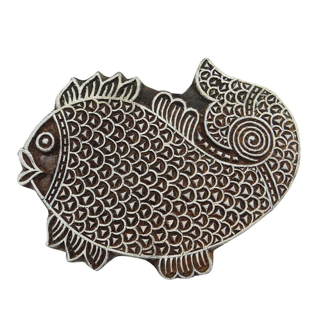 Fish Indian Wood Block Art Handcarved Indian Wooden Stamp Scrapbook Stamp