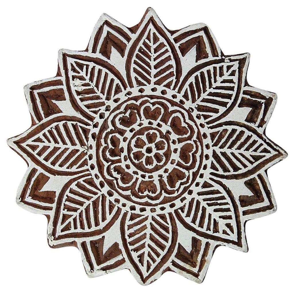 Indian Wood Stamps Decorative Blocks Brown Floral Handcarved Stamp
