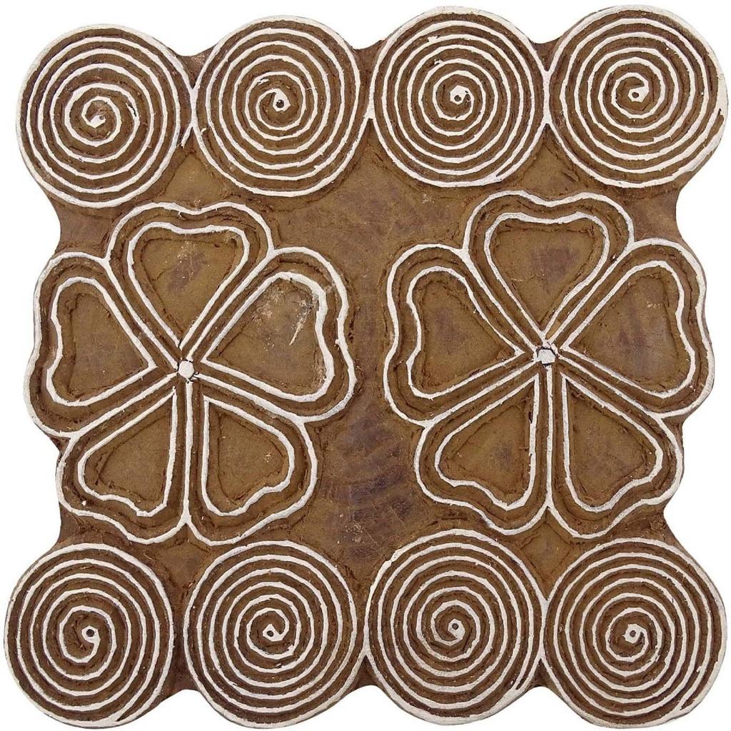 Floral Wooden Textile Stamp Brown Printing Block Art Indian Hand Carved