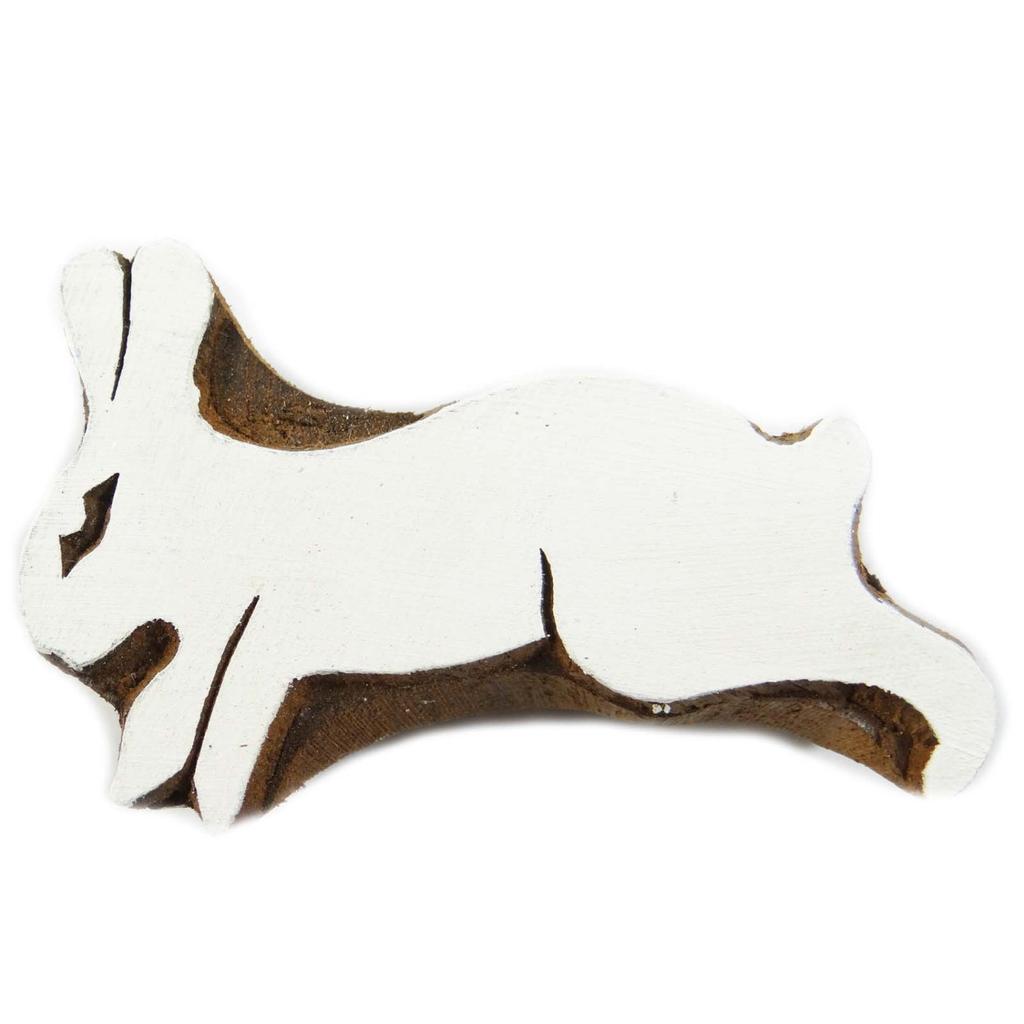 Wooden Block Stamp Brown Rabbit Design Textile Fabric Printing Apparel Art