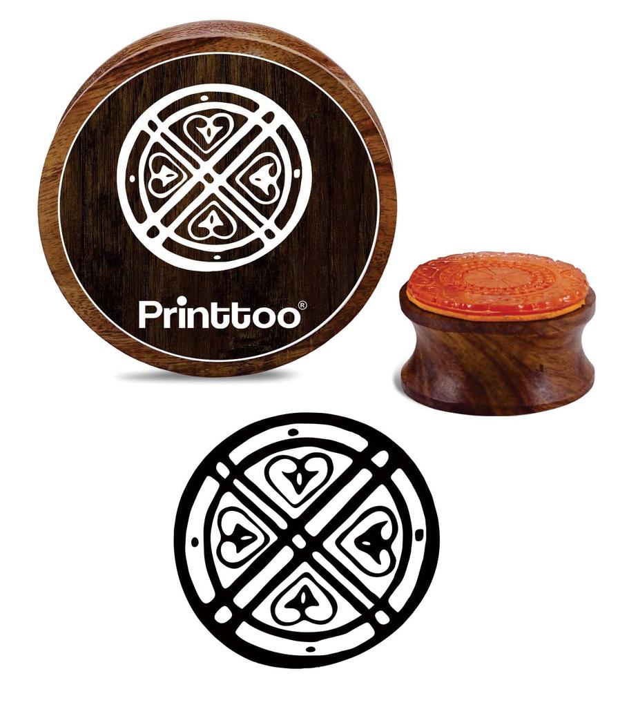Printtoo Abstract Design Round Wooden Rubber Stamp Craft Textile Print Block-2
