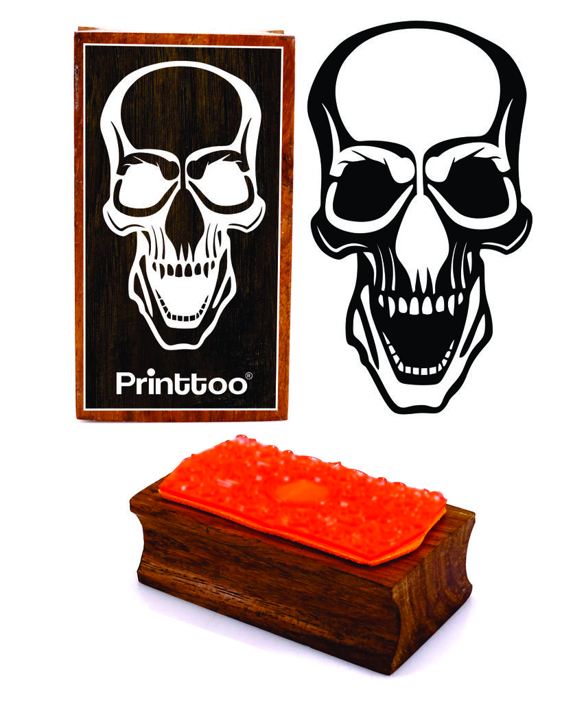 Printtoo Halloween Skull Design Rectangular Wooden Rubber Stamp Block