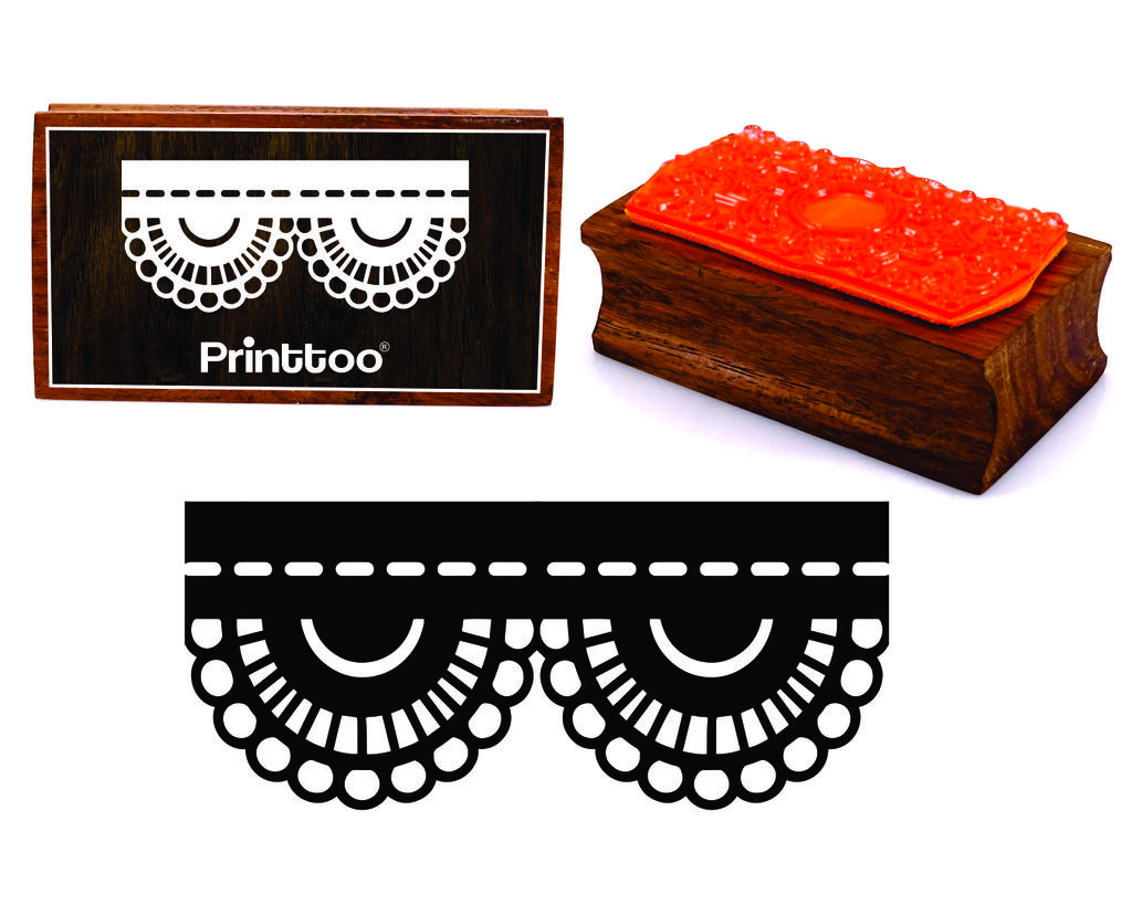 Printtoo Silhouette Ornate Lace Border Rectangular Wooden Rubber Stamp