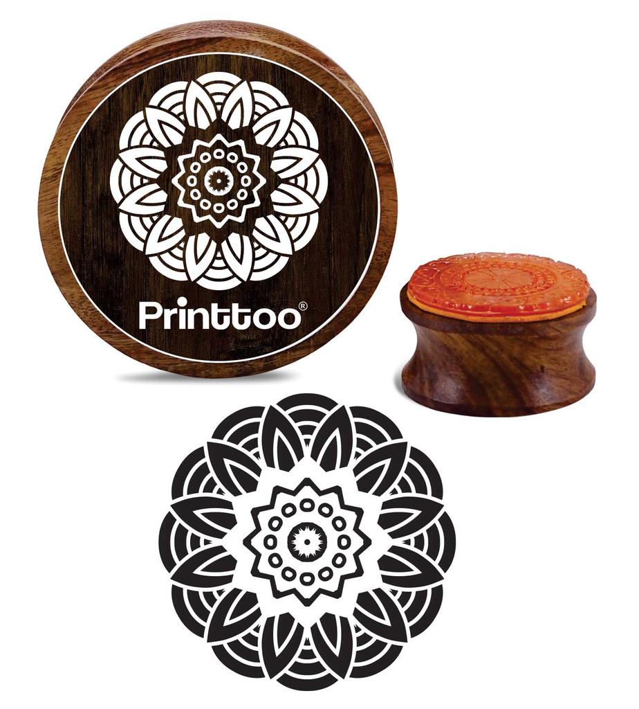 Printtoo Round Wooden Rubber Stamp Floral Mandala Pattern Crafting Textile Stamps-2
