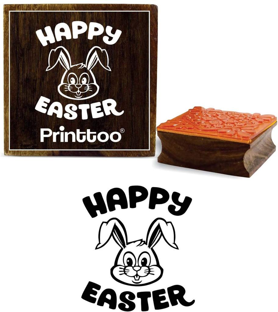 Printtoo Scrap-Booking Square Happy Easter Bunny Face Pattern Wooden Rubber Stamp-2 X 2