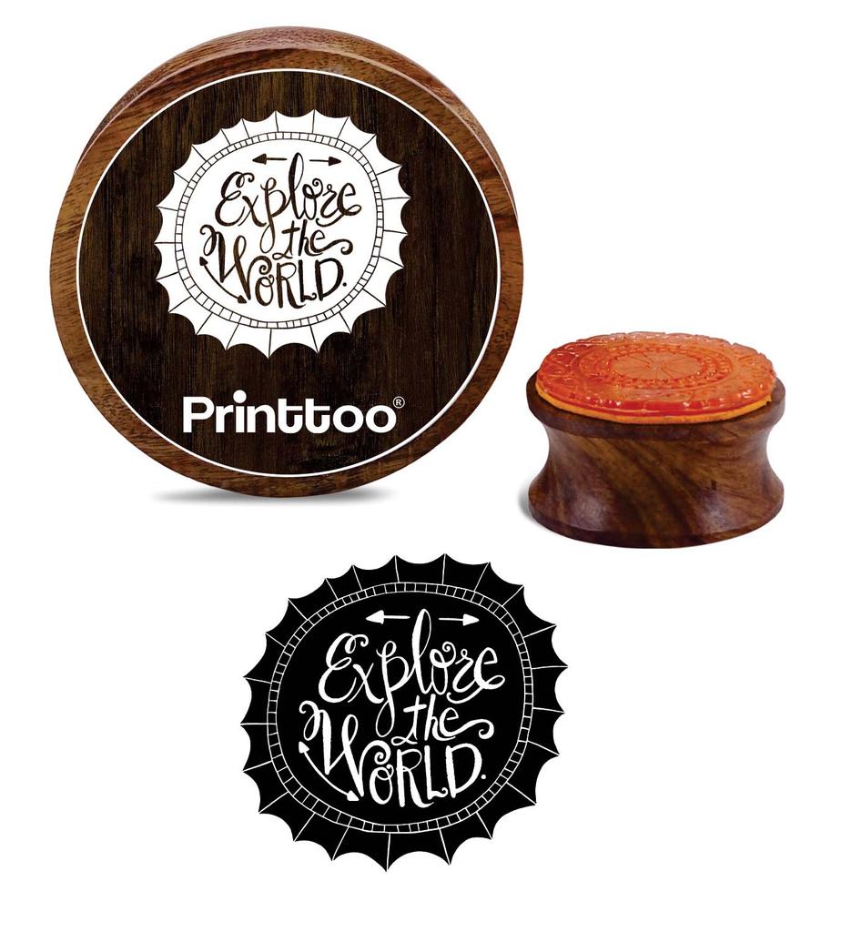 Printtoo Explore The World Word Design Scrap Diary Card Round Wooden Rubber Stamp-2