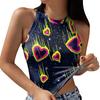New Spring Summer Sexy Women Crop Top Printed Round Neck Sleeveless Short Vest Leisure Navel Blouse Slim Fit Ribbed Tank Tops