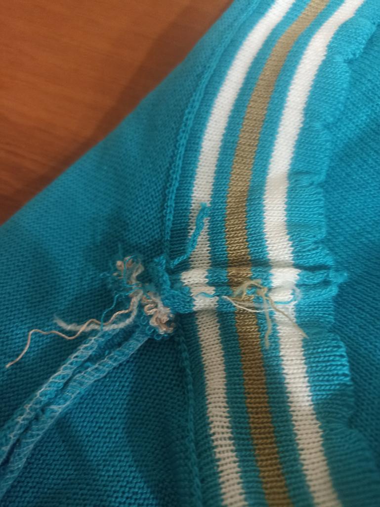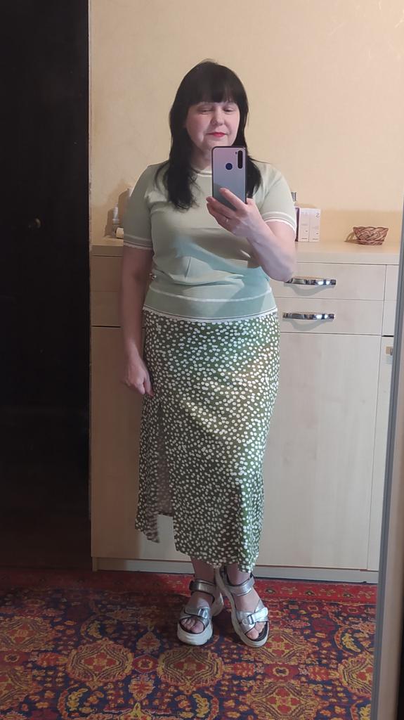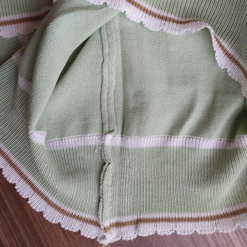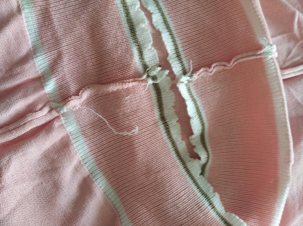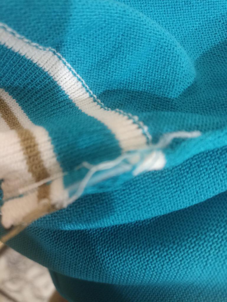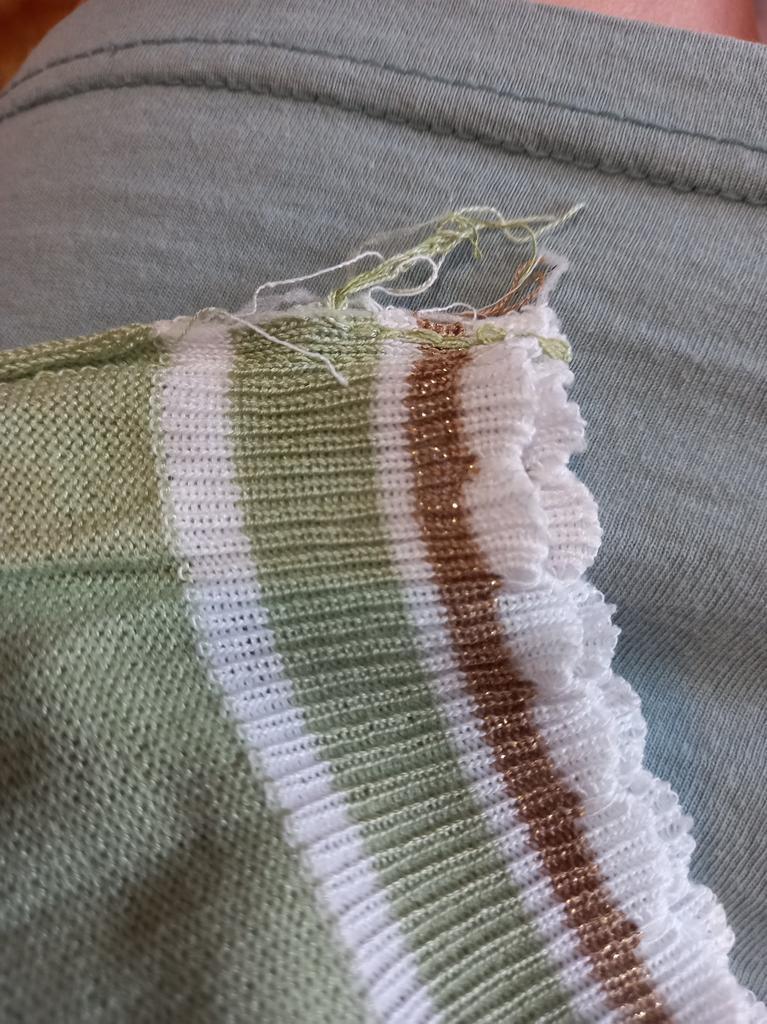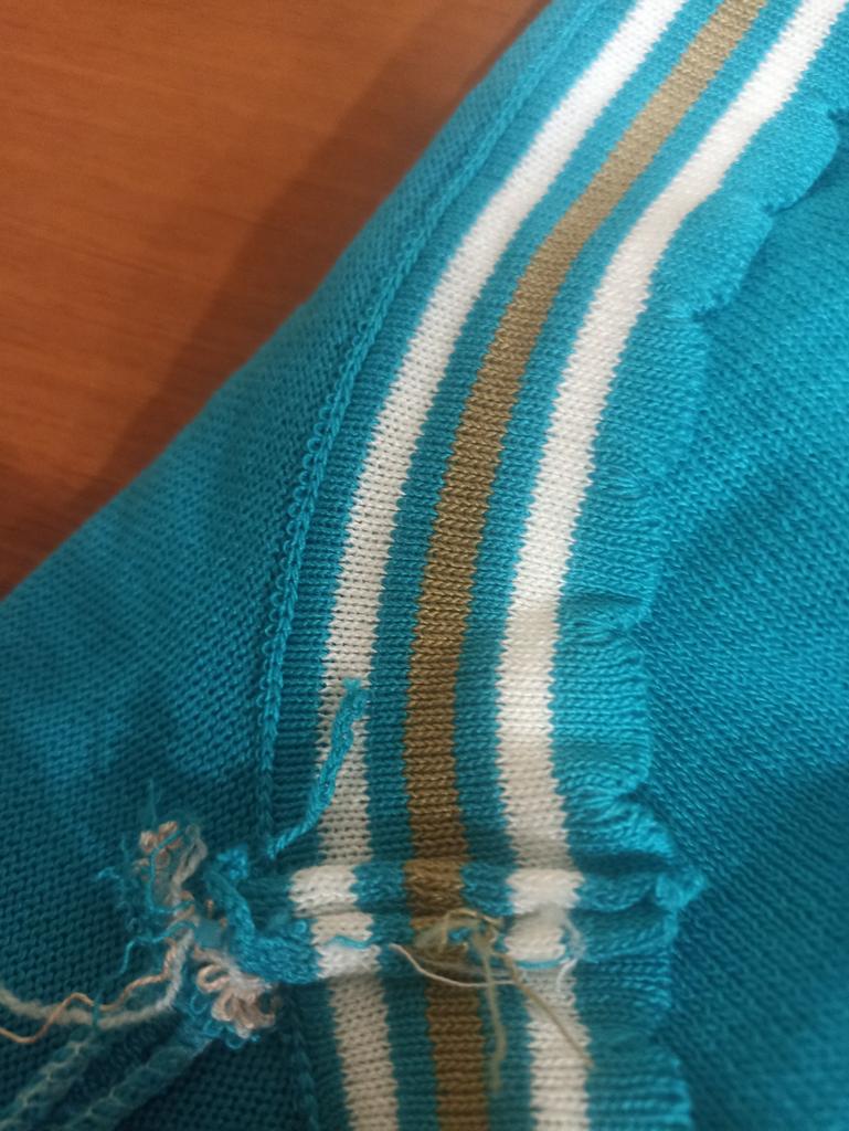 94 gauge is quite loose, very stretchy, each knit stitch ends with threads that hang outward. The neck in the shoulder seam did not fit, it is necessary to adjust the shoulder seam a little.