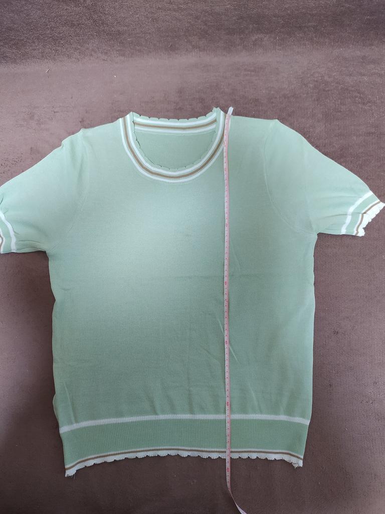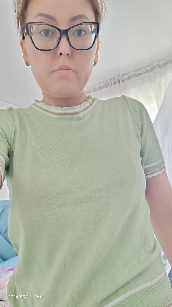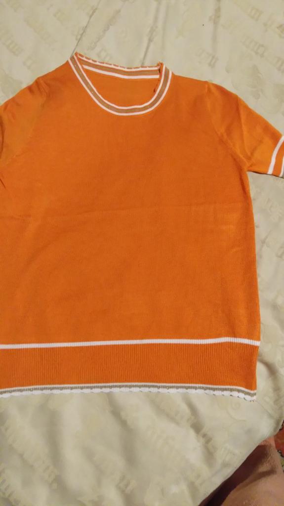 The t-shirt is nice, the color is beautiful, even more intense than in the picture, but the size doesn't quite match, I have a 99 bust but I bought a 102 to make it lighter, but anyway it's on the body, it's not tight, but it doesn't fit me either desired. I'll wear it of course, that's fine, thank you