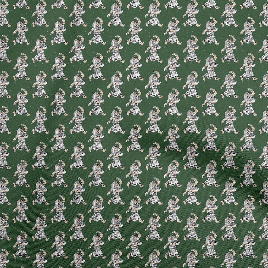 oneOone Cotton Flex Dark Green Fabric Kalamkari Kathakali Craft Projects Decor Fabric Printed By The Yard 40 Inch